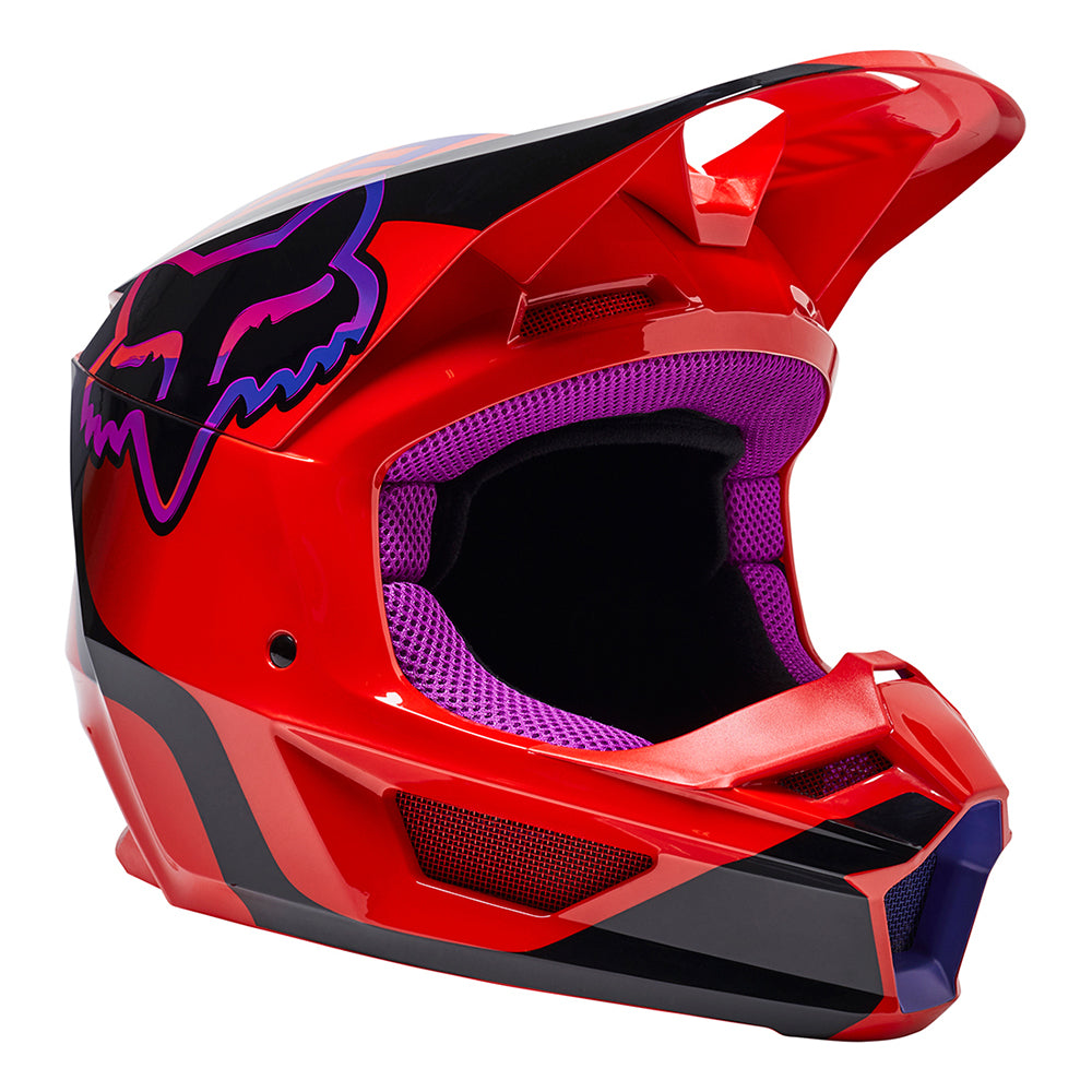 The Youth V1 Venz Helmet delivers elevated features, safety, and comfort to everyday dirt bike riders, making it one of the most competitive motocross helmets out there. Marrying safety, fit, and feel, this dirt bike lid raises the bar yet again as a value helmet with a performance mindset. The Fox V1 Venz motocross helmet doesn’t just look fast, it checks all the safety performance boxes, too.